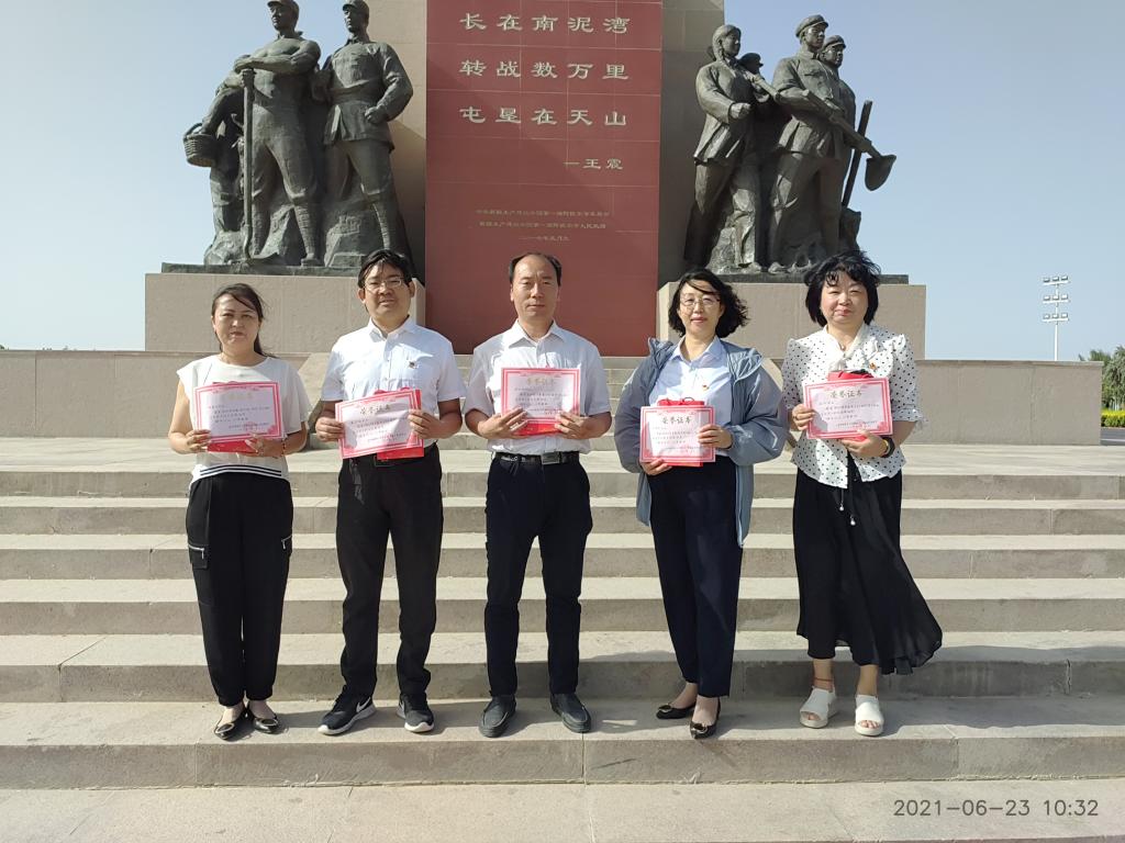 为推进党史学习教育走向深入,庆祝中国共产党成立100周年,图书馆直属党支部于6月23日组织全体党员开展“学党史 守初心 担使命”主题党日活动。此次活动通过集体过“政治生日”、党员代表发言、重温入党誓词、颁发生日贺卡、表彰学习标兵、参观三五九旅屯垦纪念馆等形式进行。