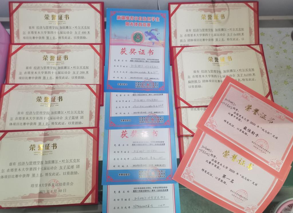 学习上,她勤奋刻苦,体育竞技舞台上,她美丽绽放。无论是她入伍前两年的校园生活,还是退役后的一年岁月,她充分展示出了超强的意志力和良好的体能素质。在冬季长跑、篮球、足球、田径等项目中,她不断超越自我;在第45届校运会中获得女子400米第一名(破校记录)的优异成绩;还获得女子足球、女子篮球“双料”冠军。
