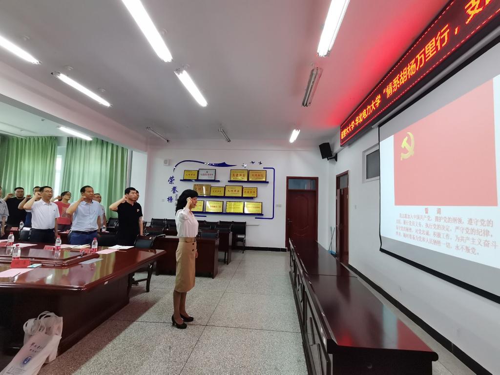 为庆祝建党百年,继承发扬党的光荣传统和优良作风,7月4日,机电院电气工程系教师党支部与华北电力大学风力发电研究中心党支部联合开展“情系胡杨万里行 支部共建迎百年”主题党日活动。校党委副书记张爱萍,华北电力大学风力发电研究中心田德、邓英教授一行6人,机电院领导,研究生工作处领导,电气工程系教师党支部全体党员参加活动。活动由王旭峰院长主持,在工科楼229会议室举办。