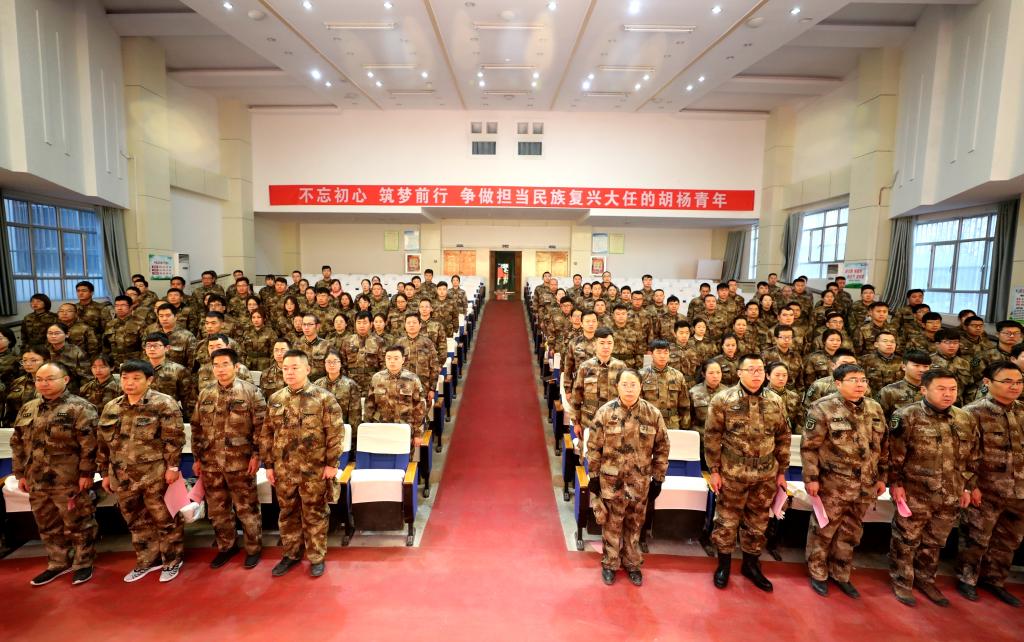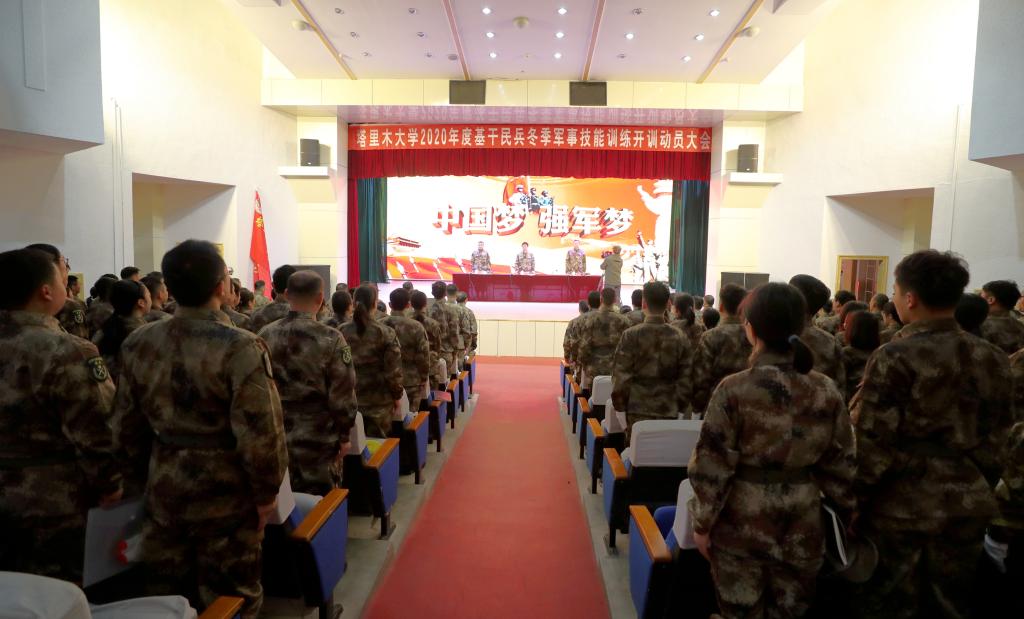 1月3日上午,beat365召开2020年度基干民兵冬季军事技能训练开训动员大会。党委书记赵光辉,党委常委、副校长于军、石长青,相关部门、学院主要负责人,学校武装部工作人员,以及170余名教职工民兵参加。会议由石长青主持,在大学生活动中心召开。