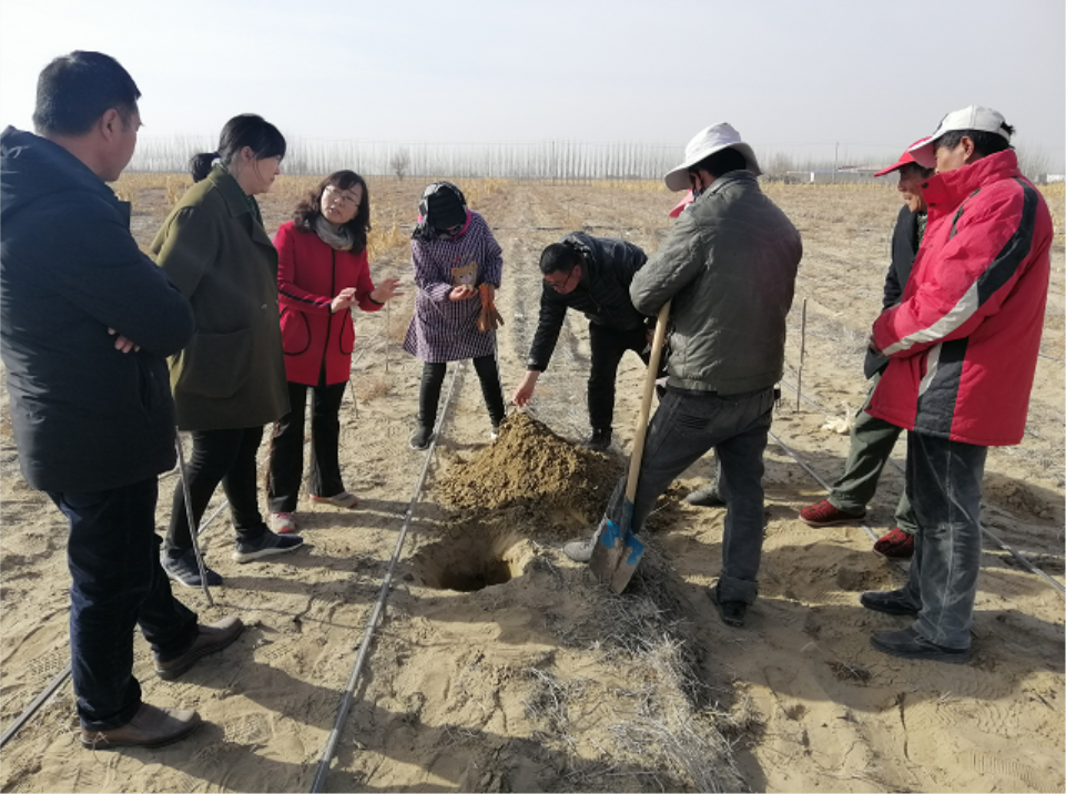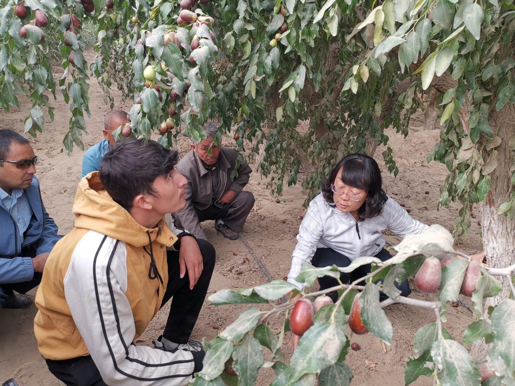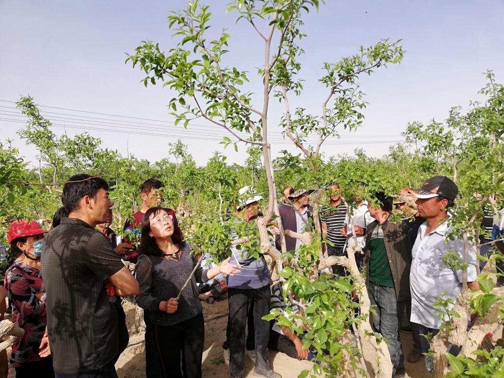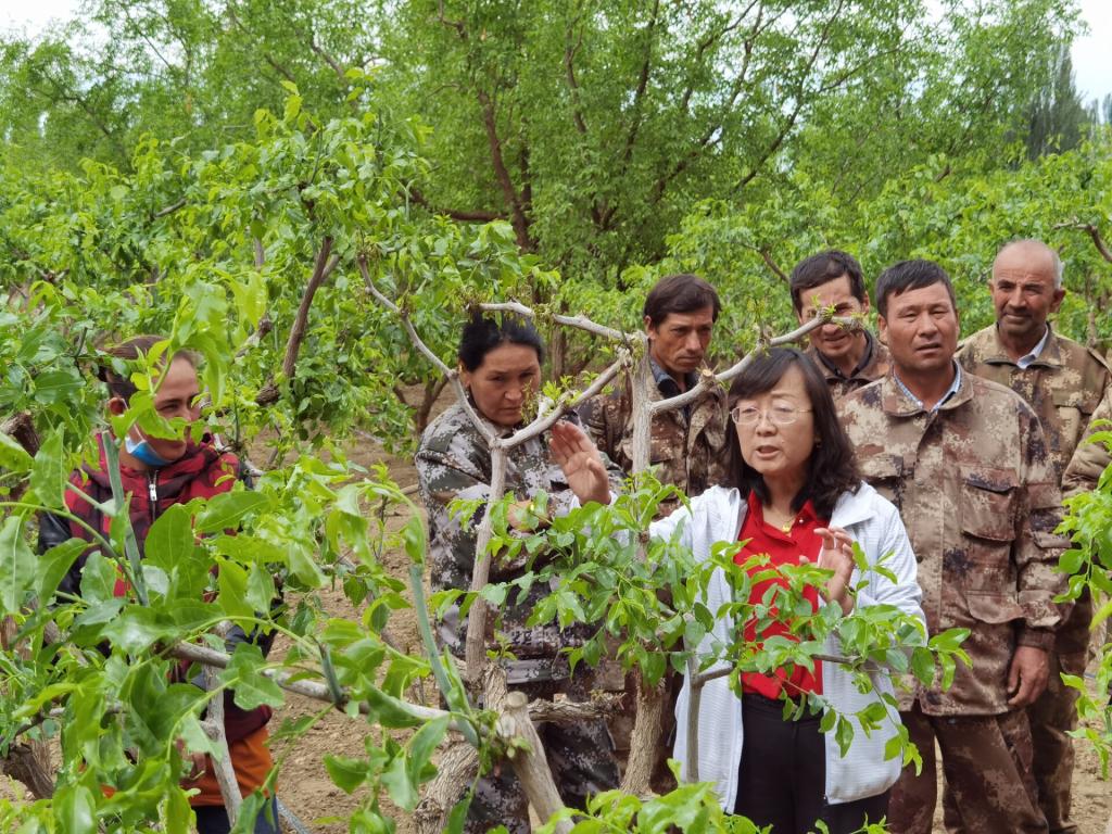 每年的果树管理关键期,她都会利用周末、节假日和寒暑假,带领团队奔赴南疆贫困团场、乡镇,在田间地头给农民培训果树种植技术,为果农开“农技处方”,并不断创新科技服务新模式。