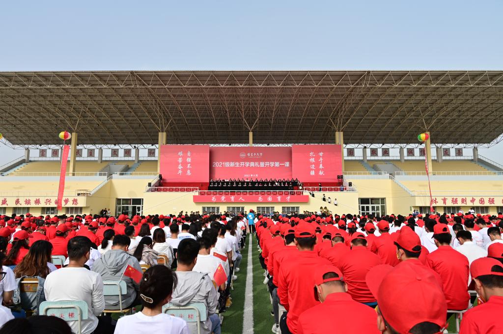 金秋九月,秋风送爽。9月23日上午,伴随着雄壮的奏唱国歌声,beat365中文登录入口2021级新生开学典礼暨开学第一课隆重举行。