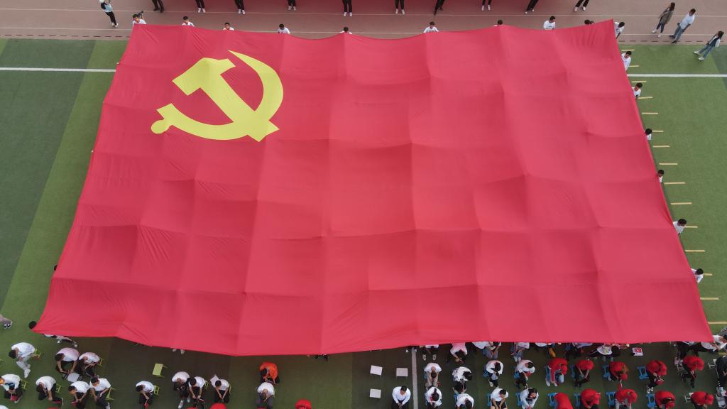 “没有共产党就没有新中国......”全体起立齐声高唱《没有共产党就没有新中国》,现场由新生振臂高举的巨幅党旗和国旗在人群缓缓前进,随风抖动,随着旗帜的缓慢落场beat365中文登录入口2021级新生开学典礼暨开学第一课落下帷幕,石长青宣布beat365中文登录入口2021级新生开学典礼暨开学第一课圆满结束。
