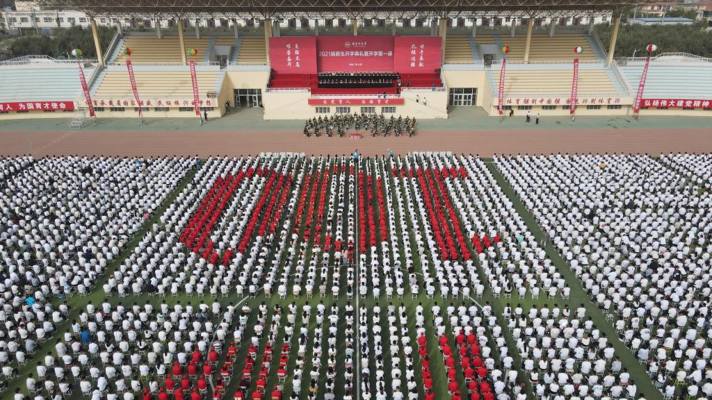 党委书记赵光辉,党委副书记、校长张传辉,党委副书记、纪委书记单洪山,副校长张利莉,党委常委、副校长曲义勇、赵峰华、于军、石长青及各学院、有关部门领导出席。辅导员、班主任、全体2021级新生参加。典礼由石长青主持,在西区运动场举行。