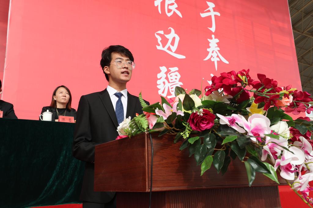 新生代表、医学院临床2021级2班本科新生徐崇俊发言,并带领全体2021级新生宣誓。他说,来自五湖四海的我们,正如一颗颗怀揣着梦想的小胡杨,相信在塔大红色基因的铸就下,我们每一颗小胡杨都能迎风招展,成为兴疆固边的新时代戍边人。要只争朝夕,不负韶华,奋勇向前,以昂扬姿态刻苦学习,历练本领,服务社会。