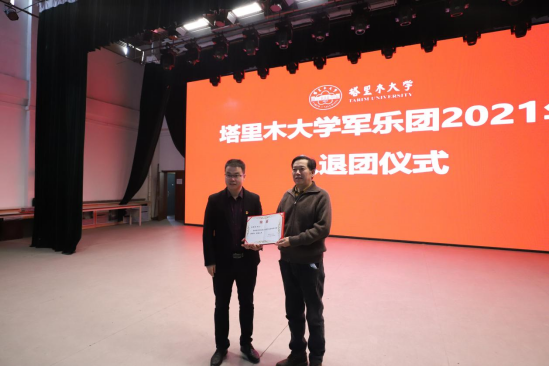 校团委副书记毕永福说:“军乐团自创建以来,在赓续红色血脉,传承优良作风,发扬胡杨精神方面发挥了主要作用,取得了显著成效。要以此次入退团仪式为新起点,用乐器奏响新时代主旋律,用音乐讲好塔大故事,在实施文化润疆、铸牢中华民族共同体意识中,贡献更大力量。”