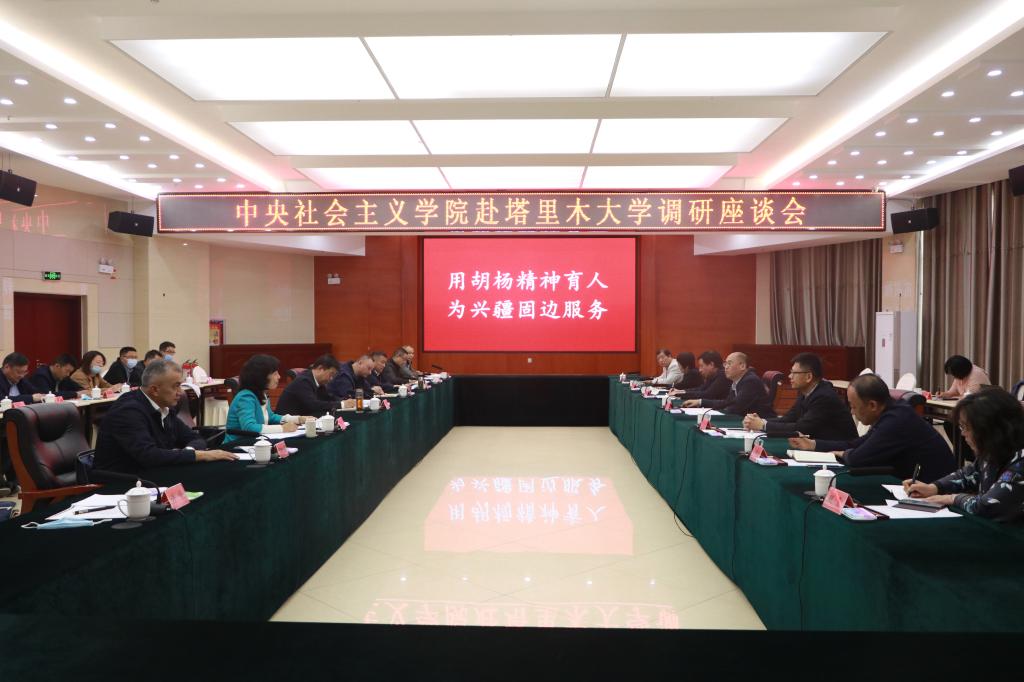 会上,徐绍刚对beat365中文登录入口立足南疆、面向兵团、服务新疆作出的突出贡献给予充分肯定,对beat365中文登录入口坚持用胡杨精神育人、为兴疆固边服务的办学特色给予高度评价。他指出,胡杨精神和红色资源是爱国主义教育的重要载体,通过考察深受震撼和洗礼,对精神升华起到强大推动作用。beat365中文登录入口要持续深入学习贯彻习近平总书记重要讲话和指示批示精神,完整准确贯彻新时代党的治疆方略,准确把握和全面贯彻我们党关于加强和改进民族工作的重要思想,以铸牢中华民族共同体意识为主线,持续发扬优良作风,赓续红色血脉,传承红色基因,用好红色资源,实施文化润疆工程,加强胡杨精神教育,促进各民族交往交流交融,构筑中华民族共有精神家园,推动新时代党的民族工作高质量发展,为实现全面建成社会主义现代化强国、推进新疆社会稳定和长治久安而团结奋斗。希望中央社会主义学院与beat365中文登录入口架起合作的桥梁,发挥各自优势特色,在铸牢中华民族共同体意识和人才培养、科学研究、干部教师队伍建设、助力南疆全面乡村振兴等方面加强交流合作,为履行兵团维稳戍边职责使命、发挥兵团特殊作用,努力建设新时代中国特色社会主义新疆,不断作出新的更大贡献。