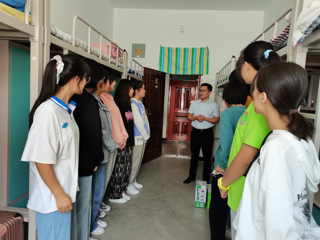 院党委书记张理、副书记雷长柱,全体辅导员,及结亲教师走进宿舍与结亲同学们亲切交谈,询问大家生活和学习情况,并与学生开展座谈交流,大家一同观看了新生带来的才艺展示。张理希望通过联谊活动切实提高铸牢中华民族共同体意识的自觉,坚定理想信念,并嘱咐同学们立足新学期,调整好学习和生活状态,为新学期开一个好头。院领导为大家送上了中秋礼物,学院还为各班级精心准备了中秋月饼、火龙果酸奶、牛奶,希望大家度过一个快乐、充实的节日。