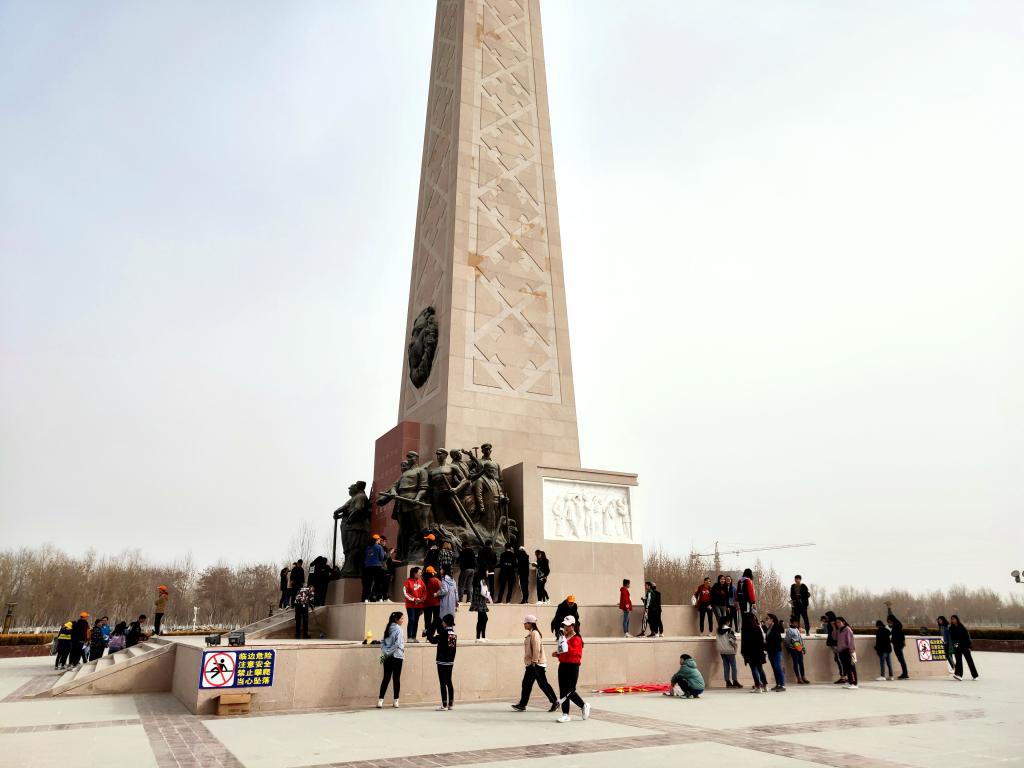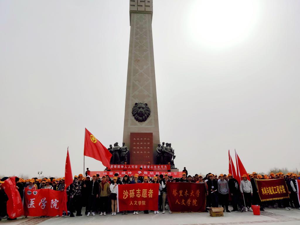 学习雷锋精神,争做胡杨青年。志愿者对市政广场和三五九旅纪念碑进行清洁,建设美丽阿拉尔。