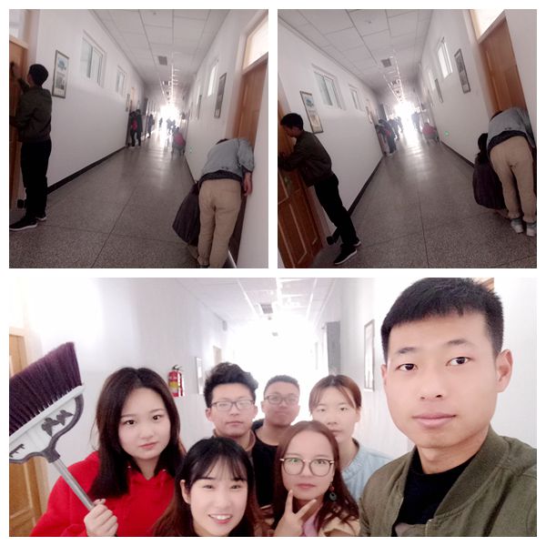 我们班分成三组,第一组在植科楼前打扫卫生,第二组打扫植科楼2个实验室,第三组在一楼楼道打扫卫生。
