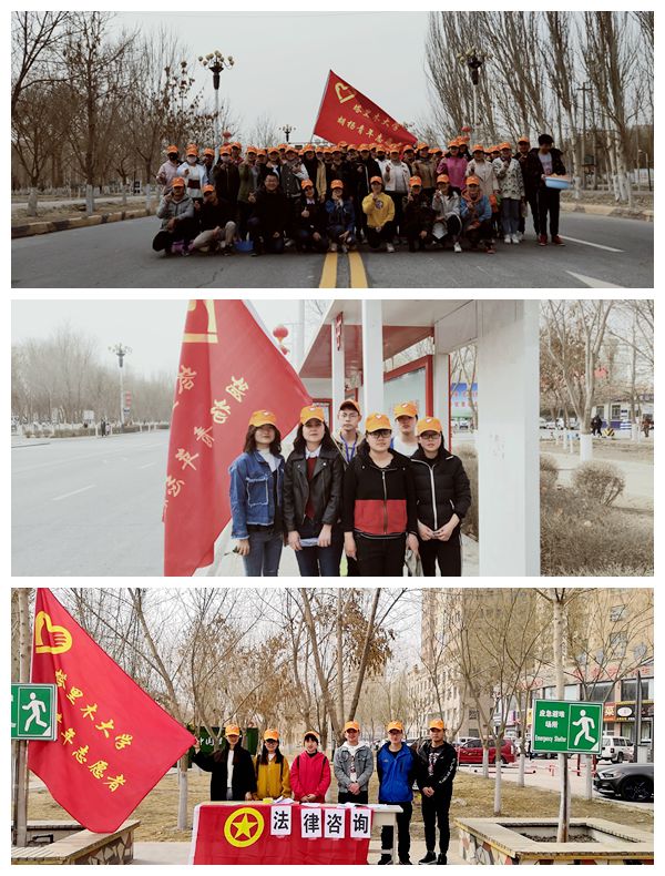 开展“青春三月行,服务暖民心”、“学雷锋,做雷锋,以行动致胡杨”等活动,学生党员、学生干部、志愿者等开展了知识宣讲和公交车站、公交车牌打扫擦拭,法律专业志愿者在新苑小区门口设立法律咨询服务台。