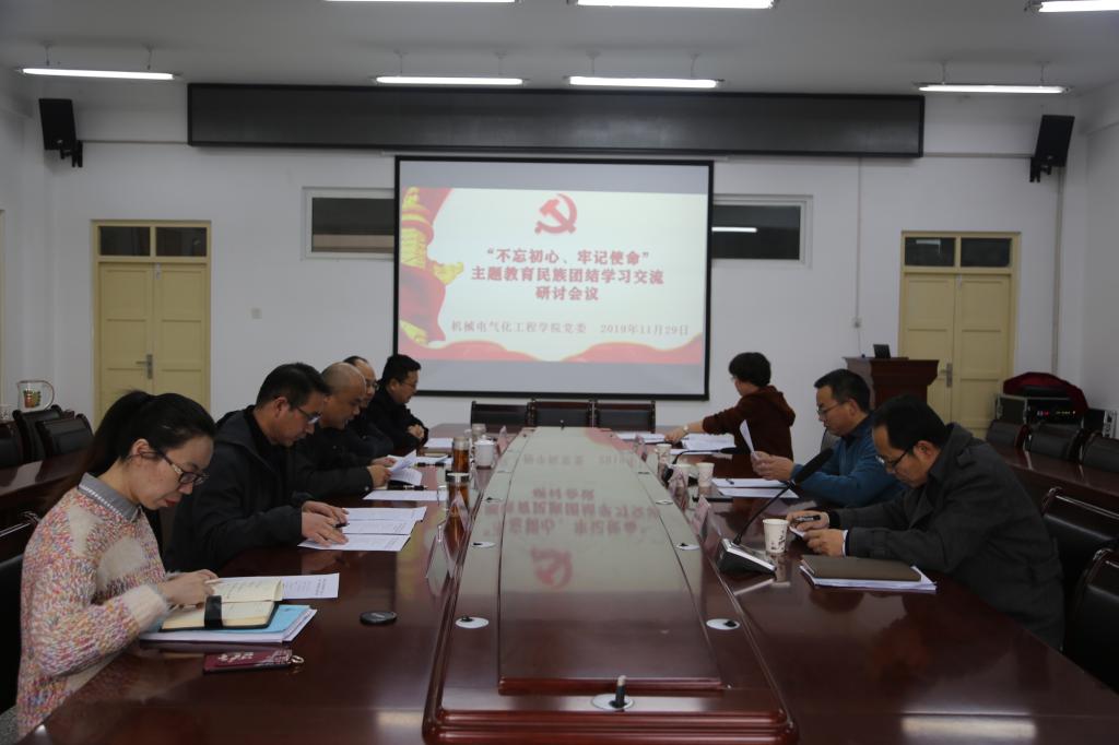 11月29日上午,机电院召开民族团结专题学习交流研讨会。学校第三指导组副组长谷建杰,学院党委领导班子成员,学校第三指导组成员,学院中层领导、办公室人员、主题教育办公室成员参加。会议由学院党委副书记、院长弋晓康主持,在工科楼229会议室举行。