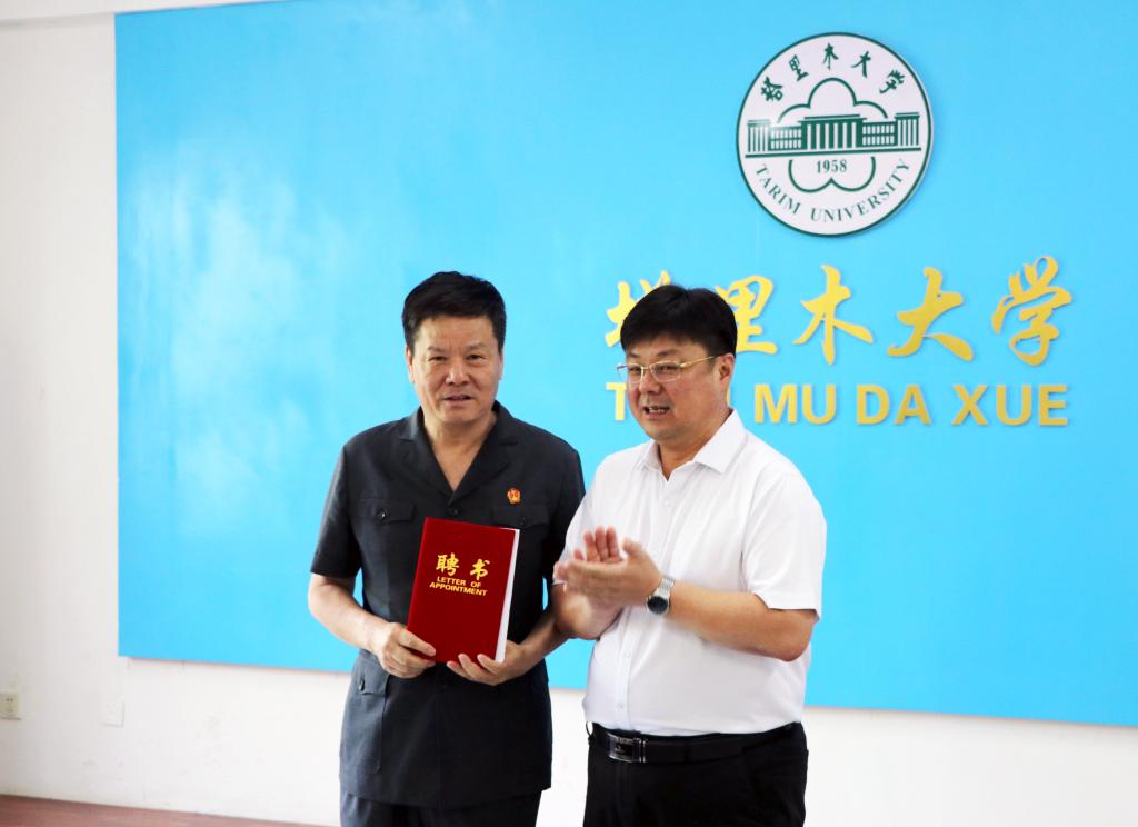 仪式上张传辉为呼应军颁发了客座教授聘书。教师工作部部长郑文轩、经管院党委书记龚平、副院长蒋志辉为一师法院系统徐冬梅等6位法官颁发了兼职教师聘书。