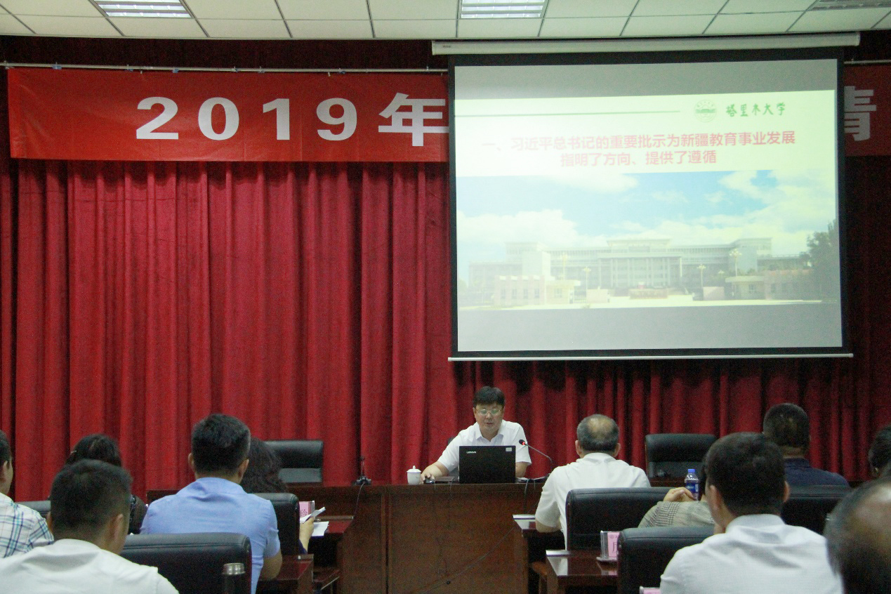 2019年6月16日下午,自治区2019年专家国情研修培训班(第二期)第三讲在新疆大学校本部行政楼一楼会议室开讲,张传辉校长为学员作了题为《用胡杨精神育人 为兴疆固边服务》的专题讲座。