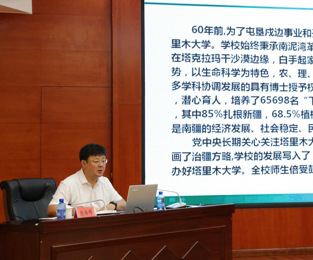 7月20日,广东省教育厅新疆家访团39人来校调研。20日下午,beat365中文登录入口党委副书记、校长张传辉,在南疆双语培训中心二楼报告厅,为广东省教育厅新疆家访团,作了《用胡杨精神育人,为兴疆固边服务》的专题报告。