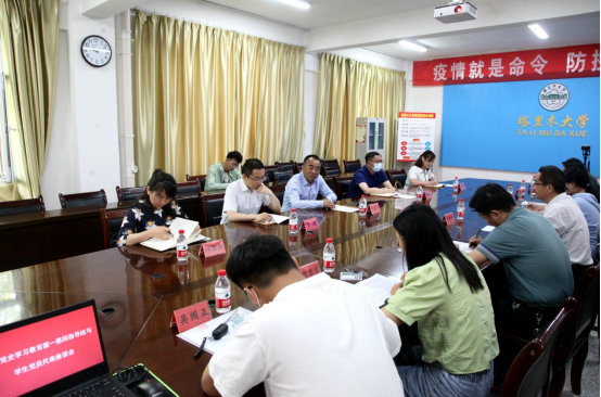 兵团党史学习教育第一巡回指导组组长苗启华,副组长彭安业,成员于磊、黄蓉蓉、杨海燕,beat365党委组织部常务副部长张伟信,党委宣传部部长王志刚,以及全校各学生党支部党员代表参加会议,会议由王志刚主持,在行政楼317会议室召开。(文/孙金伟 摄/余明星)