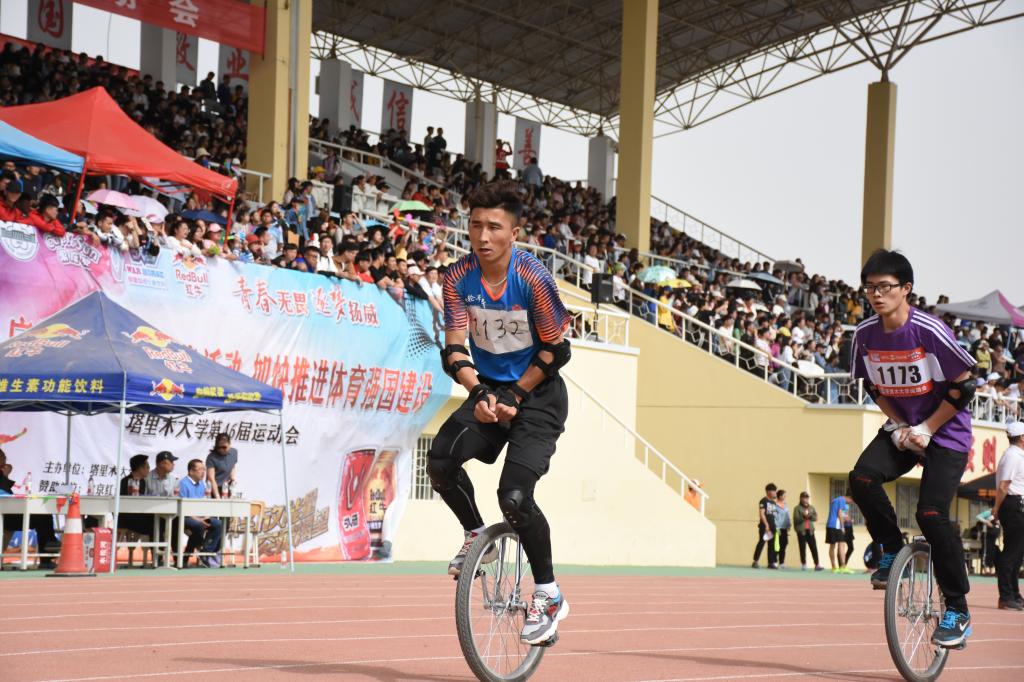 4月26日下午,男子独轮车400米决赛顺利举行。跑道上,选手们整装待发。发令抢一响,选手们迅速地踩上独轮车,似离弦之箭一样冲了出去,每一个动作都是一道亮丽的风景线,每一个转弯都展现着他们高超的技术,他们在激烈的追逐。接近终点时,冲在最前面的一位选手突然从独轮车上掉了下来,网络工程2018级1班徐勇根将其超越,以1’03”87的成绩第一个冲过了终点线,获得了该项目的冠军。