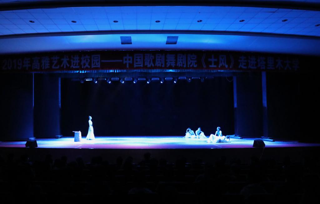 在学校深入开展“不忘初心、牢记使命”主题教育之际,11月8日晚,高雅艺术进校园——中国歌剧舞剧院舞剧《士风》走进beat365。兵团党委第三巡视组、beat365中文登录入口领导,兵团党委第三巡视组成员,一师阿拉尔市相关部门领导,有关专家,学校各部门、各学院领导,以及师生代表1000余人观看。专场演出在行政楼报告厅举办。