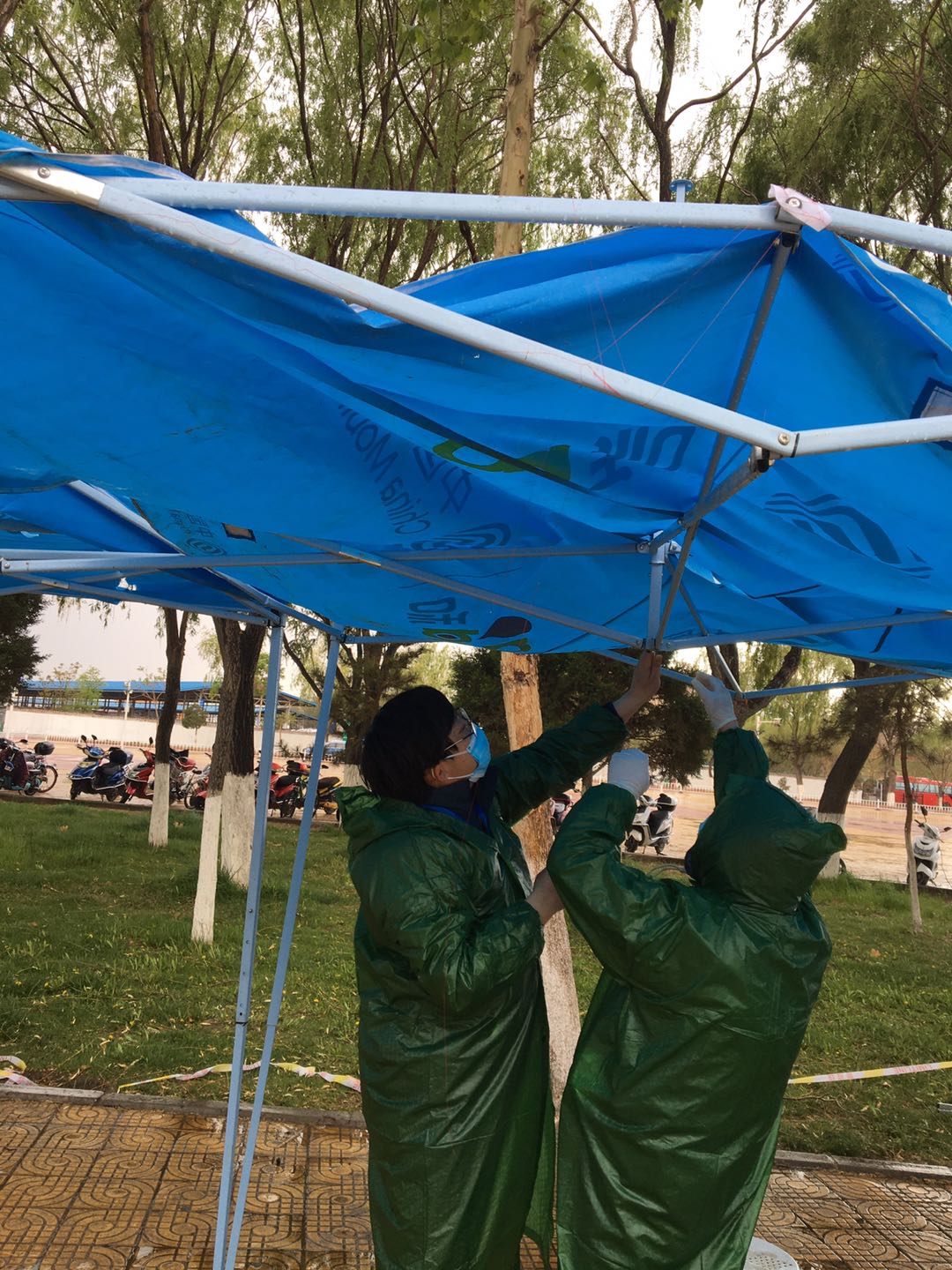 老师们在紧张地修复遮雨棚(文/谷在玲 摄/智翠兰) |
