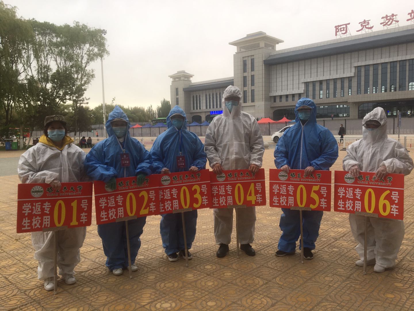 4月17日,按照学校返校复学和疫情防控工作安排,图书馆副馆长袁守亮一行11人,和其他单位的老师们一起,赶赴阿克苏,负责返校学生接站接机、登记信息、联系大巴车及宾馆,分发口罩和矿泉水等工作。