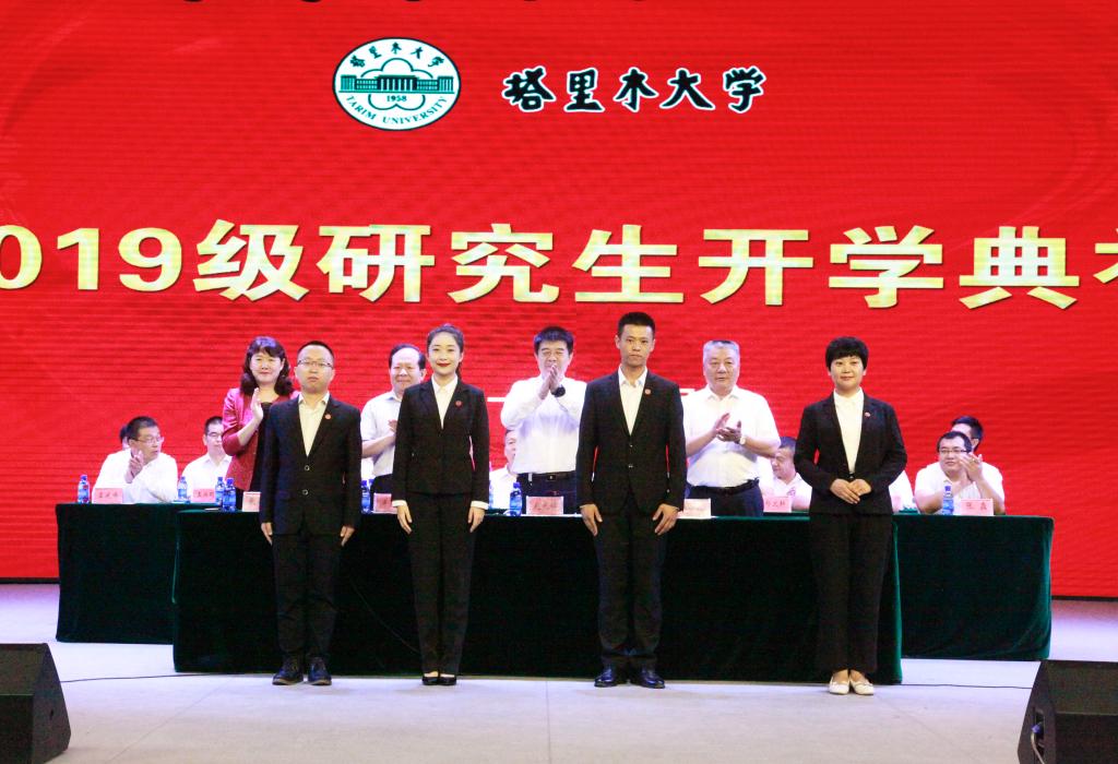 典礼上还进行了新生佩戴校徽仪式。校徽是一所大学的象征和标志,不仅代表着塔大人的身份,更承载着塔大人的胡杨精神,承载着塔大人的光荣使命。2019级研究生,带上校徽,就代表着从此成为了塔大人。