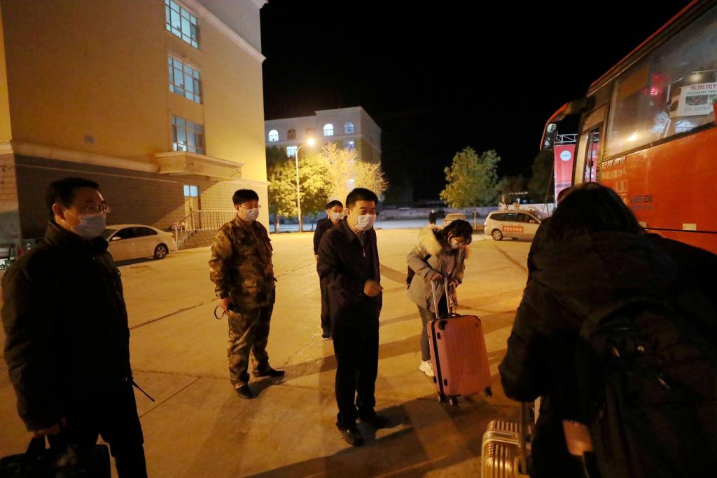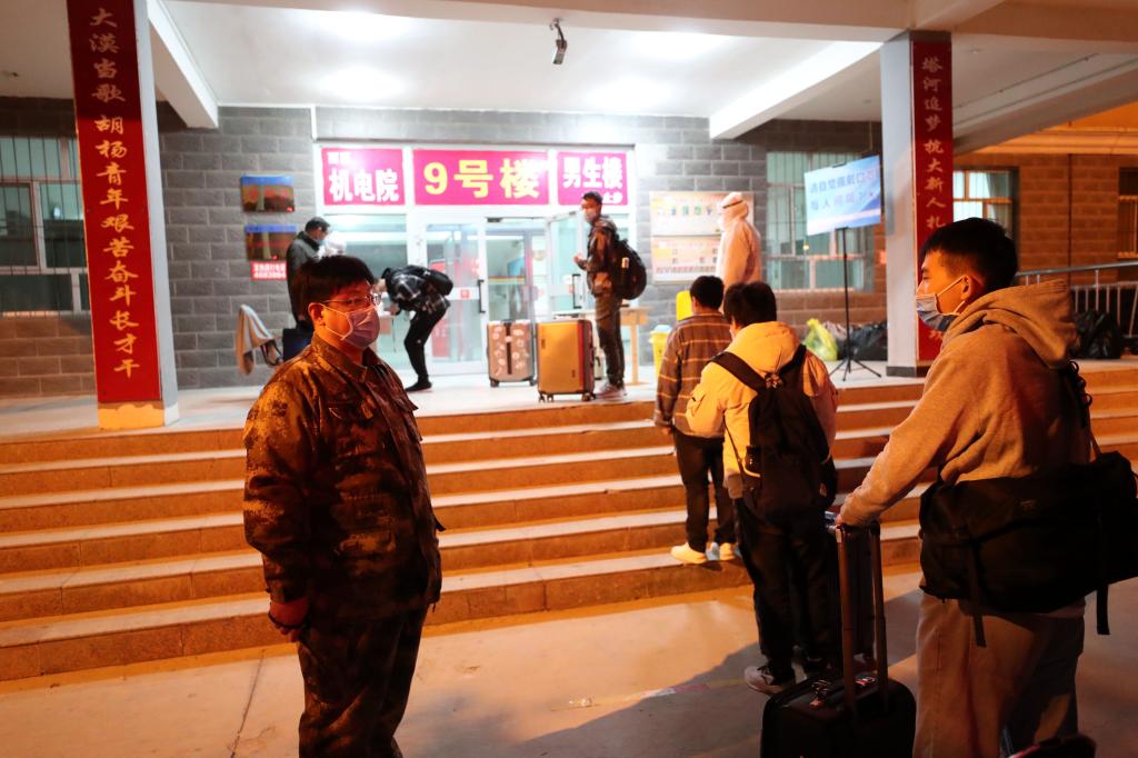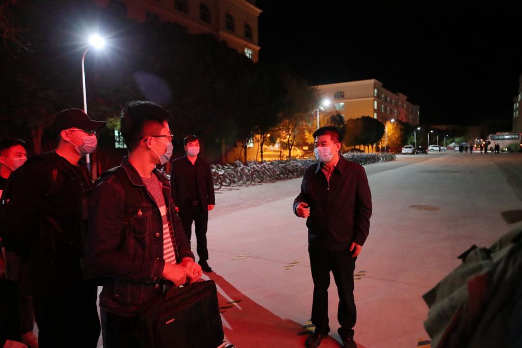 为确保内地学生安全健康顺利返校复课,从4月24日深夜到4月25日凌晨,beat365中文登录入口党委书记赵光辉,党委副书记、校长张传辉,党委副书记、纪委书记单洪山,党委副书记张爱萍,副校长张利莉,党委常委、副校长于军、石长青,以及全体处级干部,在学生公寓前迎接疆外返校学生,现场指挥协调返校学生交通疏导、信息登记、健康检测、消杀毒、入住手续办理、餐饮供应等各项工作。