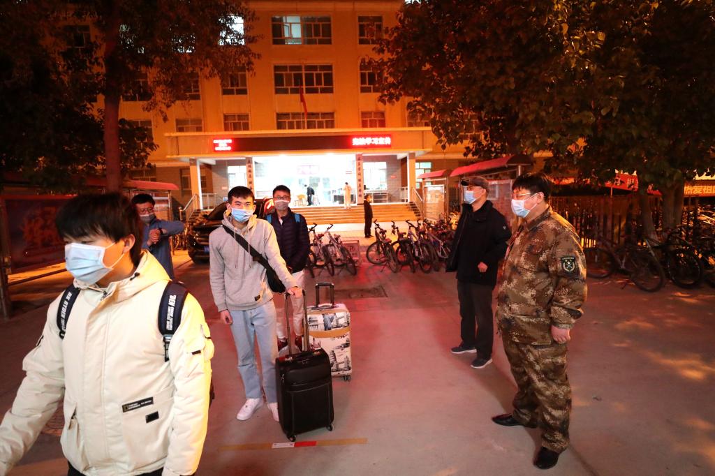 学校领导在现场守候了整整一夜,迫切等待同学们健康平安返校。看到同学们纷纷走下大巴车,学校领导与同学们亲切交谈、嘘寒问暖,热烈欢迎同学们返校复课,让同学们深受感动、倍感振奋。学校领导叮嘱同学们一定要自觉服从学校管理和安排,做好个人防护,勤洗手、多通风、少聚集、多锻炼,吃好、睡好、休息好、学习好,以健康向上的心态、积极昂扬的姿态进行校园学习生活。学校领导叮嘱工作人员要强化责任,攻坚克难,团结拼搏,再接再厉,全力以赴做好学生返校复课各项服务保障工作。学校领导还专门看望慰问一路全程护航大巴车返校的师市有关负责人和工作人员,与他们深入交谈,感谢他们对学校学生返校复课和疫情防控工作的鼎力支持和辛勤付出。