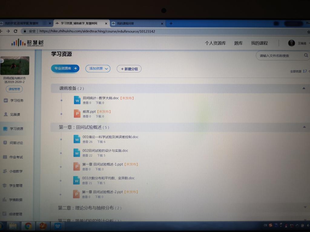 吴全忠老师在备课过程中,感觉教学资源不够用,他将课程信息、教学大纲、教案、讲义、课件等课程相关资料,及时上传到在线授课平台,让学生提前学习准备。