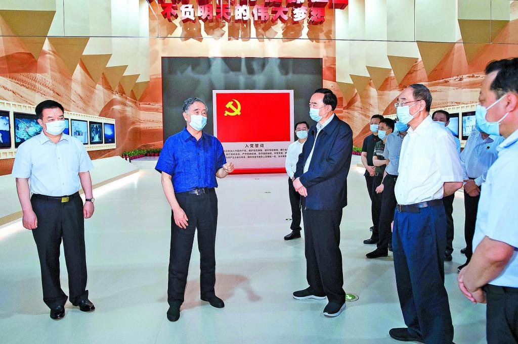 7月21日至24日,中共中央政治局常委、全国政协主席汪洋在新疆调研兵团工作。这是22日,汪洋在新疆兵团军垦博物馆了解兵团屯垦戍边历史。 □新华社记者 李涛摄