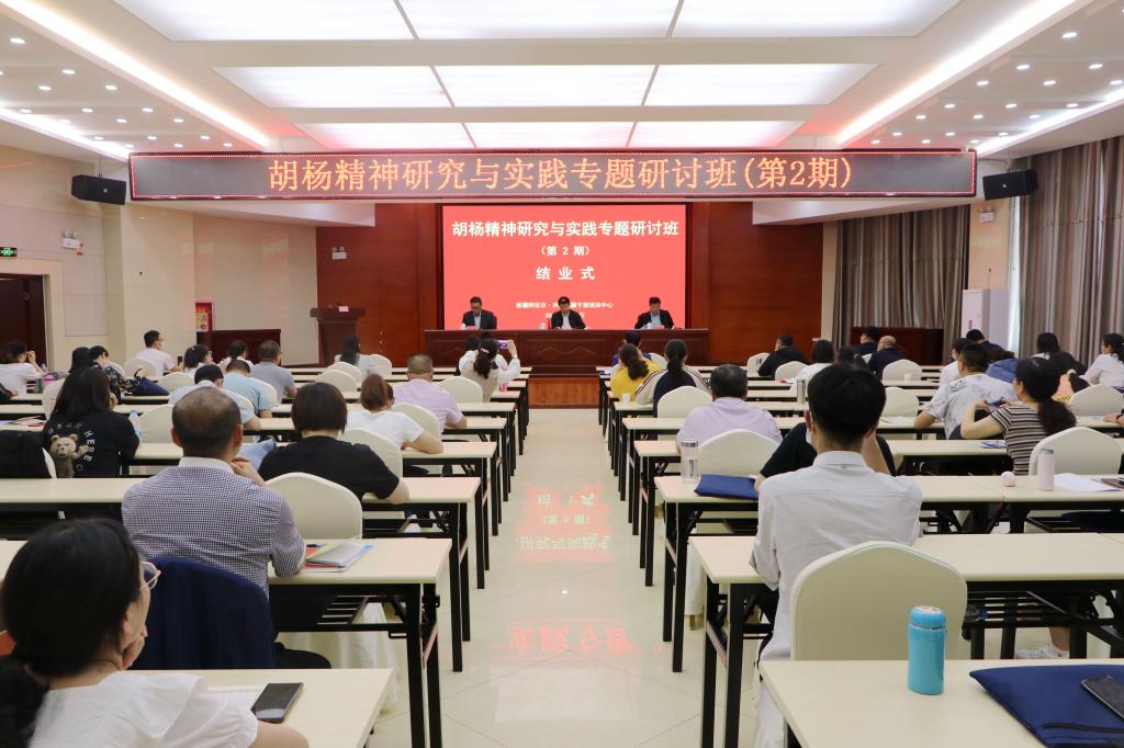 5月14日下午,胡杨精神研究与实践专题研讨班(第2期)结业仪式举行。党委书记赵光辉出席并讲话。党委组织部常务副部长张伟信,继续教育学院党总支书记徐崇志,以及研讨班全体学员参加。仪式由张伟信主持,在双语培训中心二楼报告厅举行。