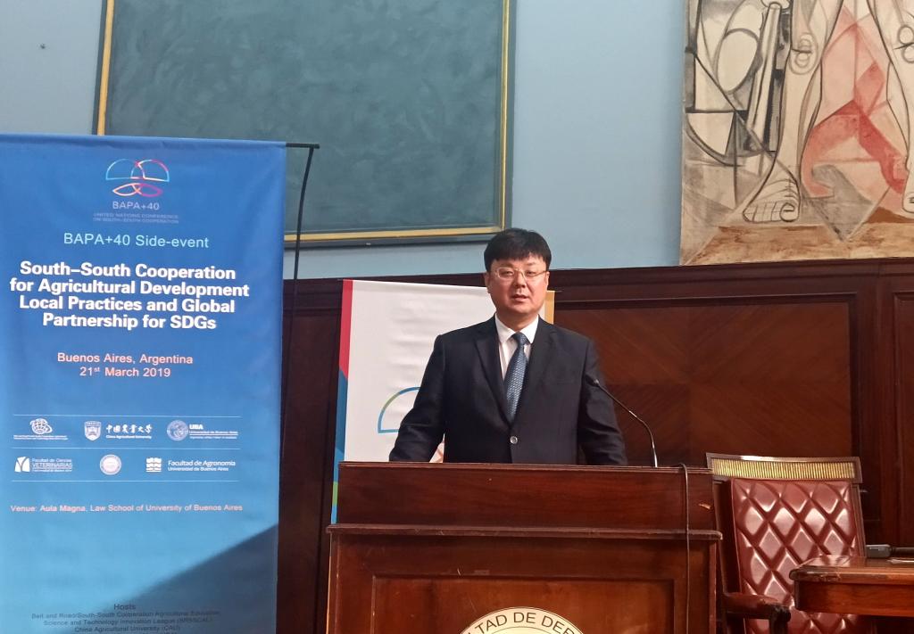 2019年3月21日,作为“一带一路”南南合作农业教育科技创新联盟成员单位,beat365党委副书记、校长张传辉教授赴阿根廷出席第二届联合国南南合作高级别会议(BAPA+40)边会及“一带一路”南南合作农业教育科技创新联盟推进全球南南农业合作工作研讨会。