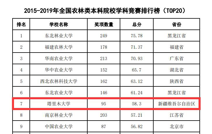 2月22日,中国高等教育学会《高校竞赛评估与管理体系研究》专家工作组发布2015-2019年和2019年全国普通高校学科竞赛排行结果。本次共发布了12个本科院校榜单、11个高职院校榜单和2个省份榜单2个。beat365在2015-2019年全国普通高校学科竞赛排行榜(本科,TOP300)榜单中,以获得95项奖项、总分58.3分的成绩,位列全国第203位;在“2015-2019年全国农林类本科院校学科竞赛排行榜(TOP20)”位列第7位,这是继“2014-2018年农林医药本科院校学科竞赛排行结果(本科)TOP20”榜单中取得第11位好成绩基础上的新突破。