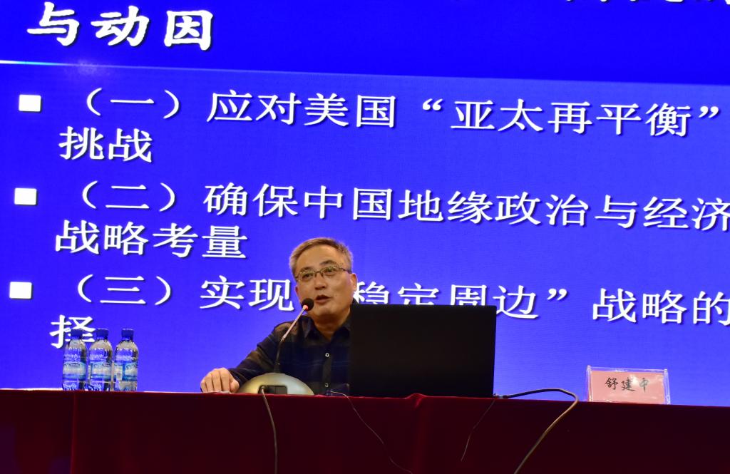 舒建中就如何应对美国“在亚太再平衡”战略的挑战,确保中国地域边缘政治与经济安全的战略考量,怎样实现“稳定周边”战略的战略选择等问题进行了深入解读,分析了中国地域边缘政治与经济安全的战略考量。他指出,通过对再平衡战略进行分析评估,对我们更深刻理解美国亚太政策及其战略意图具有重要意义。(文/张一驰 塔来别克 摄/毛嘉琪)