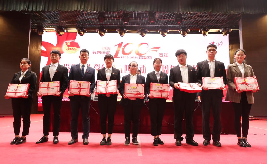 4月29日,行政楼报告厅座无虚席,严肃活泼,生动热烈,欢声雷动,充满生机与朝气。今年是五四运动100周年,也是中华人民共和国成立70周年。在这个具有特殊意义的历史时刻,学校领导干部和广大师生员工在这里隆重聚会,共同庆祝第129个国际劳动节,纪念五四运动100周年,启动第六届校园文化艺术节,隆重表彰在过去一年里表现突出的先进集体和个人,激励和动员广大师生员工进一步振奋精神、凝心聚力。