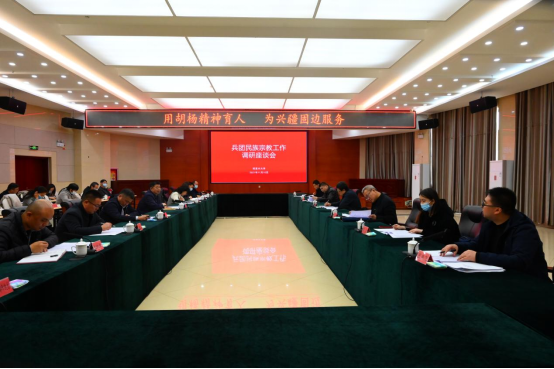 11月10日,兵团党委统战部常务副部长宋骏一行来校调研并召开调研座谈会。beat365党委书记赵光辉,党委副书记张爱萍,党委常委、副校长石长青出席。兵团党委统战部有关部门领导、兵团“民族团结一家亲”活动领导小组办公室干部,学校有关部门、各学院主要领导参加。会议由张爱萍主持,在胡杨干部培训中心二楼报告厅举行。