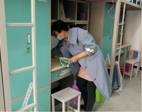 各学院老师逐个打扫每间学生宿舍,期待着学生们返校。记者在12栋3层见到正在忙碌的老师们,第一遍先扫垃圾、角落的头发、灰尘,然后清理书桌、阳台,然后用小拖把、排拖再拖一遍,同时喷洒消毒液,并为同学们准备了大礼包(口罩、洗面奶、牙刷、毛巾、香皂、纸巾、洗发膏等12件套)。