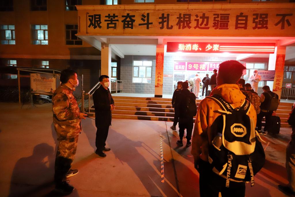 凌晨1点多,兵团督导组组长、兵团教育局党组成员、副局长刘培俊,beat365中文登录入口党委书记赵光辉,党委副书记、校长张传辉,党委副书记、纪委书记单洪山,党委副书记张爱萍,副校长张利莉,党委常委、副校长曲义勇、于军、石长青,以及机关全体处级干部、科级干部,来到学校正南门列队集合,热切等待乘坐首批兵团胡杨专列返校复课的疆外学生。