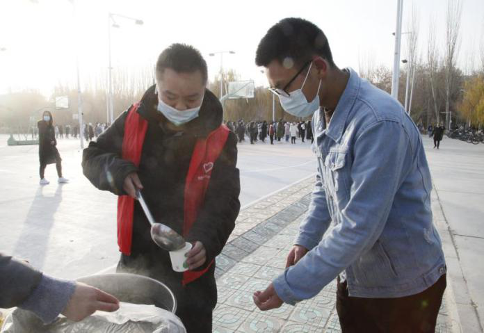 学校专门在各检测点设立了志愿者服务站,为师生提供了热气腾腾的姜茶和热水,让大家心里暖洋洋的。