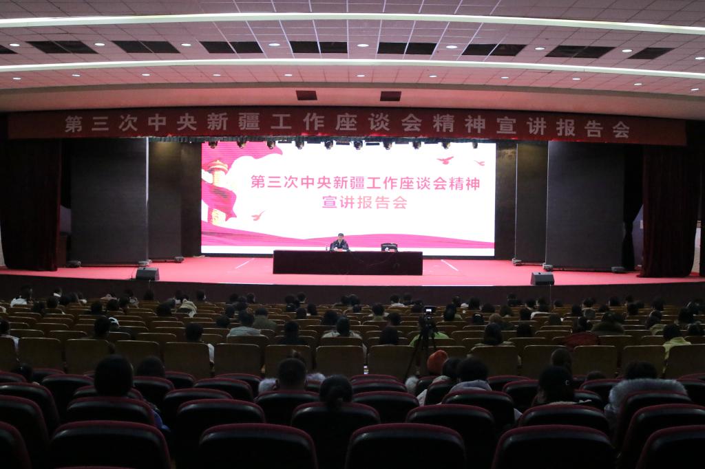 11月18日下午,党委书记赵光辉为人文院党员干部和师生宣讲第三次中央新疆工作座谈会精神。宣讲报告会由人文院党委书记张理主持,在行政楼报告厅举行。