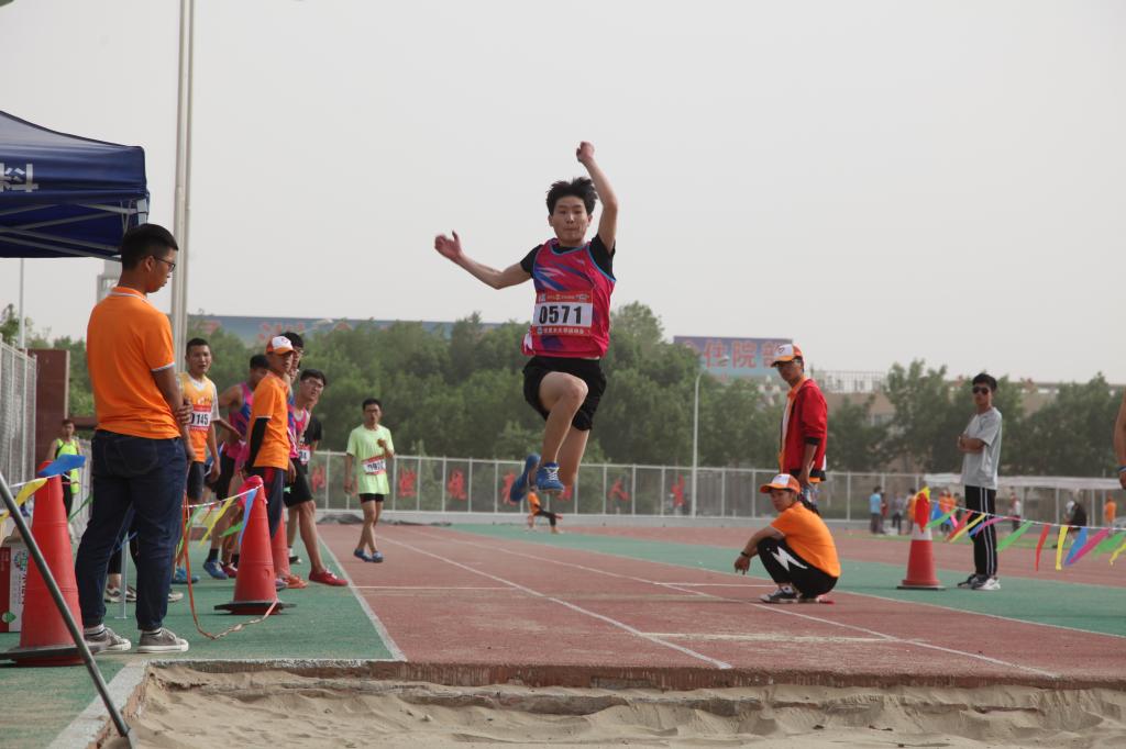 4月26日下午,在beat365中文登录入口46届运动会男子组三级跳远预决赛上,生命科学学院赵晨曦同学以12.97的成绩夺冠。