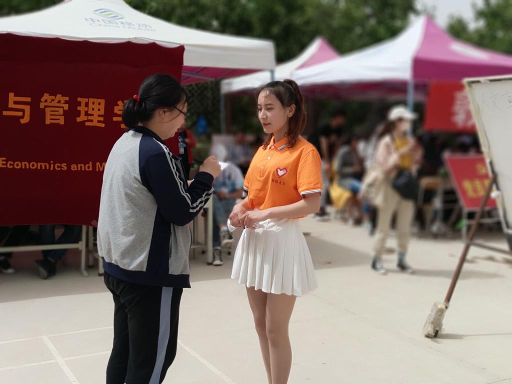 记者来到工作服务站,他们忙碌的身影在人群中穿梭,在现场记者采访了动科院志愿者动医4班魏雨洋。面对记者的采访,魏雨洋告诉记者,“作为志愿者我们在早晨8:45前来到服务站做准备,备好上场运动员需要的水或吃的,帮运动员收拾好私人用品,将休息区收拾好,尽量给准备上场的运动员提供最安心的环境,给参加完比赛的运动员一个舒适的体验。其实以前在院运会期间就做过这类工作,相比上次的志愿服务这次更加得心应手,对于突发问题的应对也可相对更加有经验一些。”