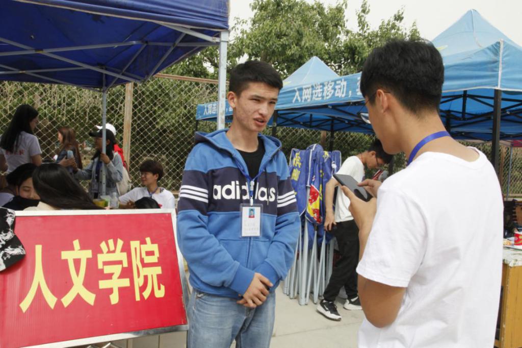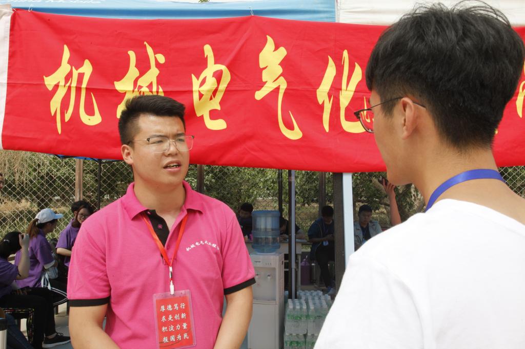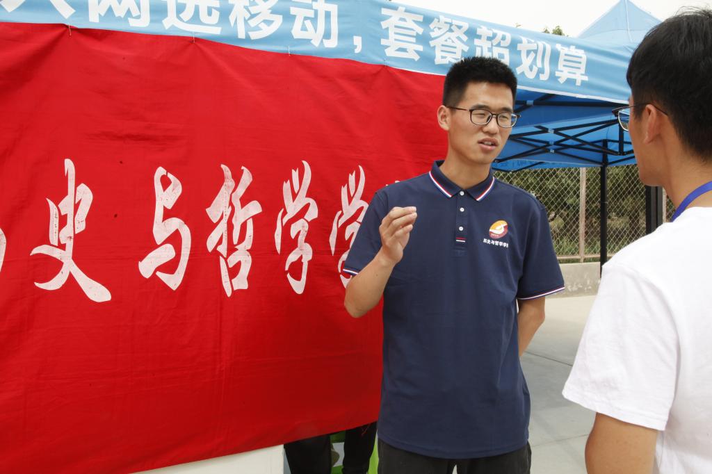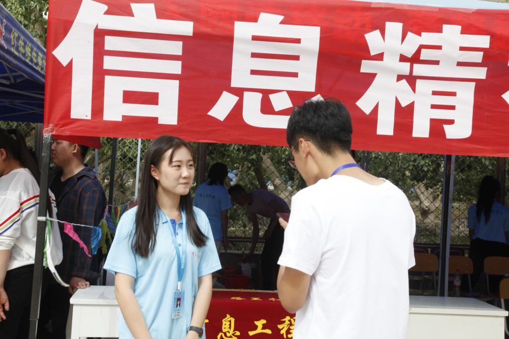 各学院服务站,鳞次栉比、从南到北、依次排开,工作人员衣着整齐,服务保障工作井然有序。