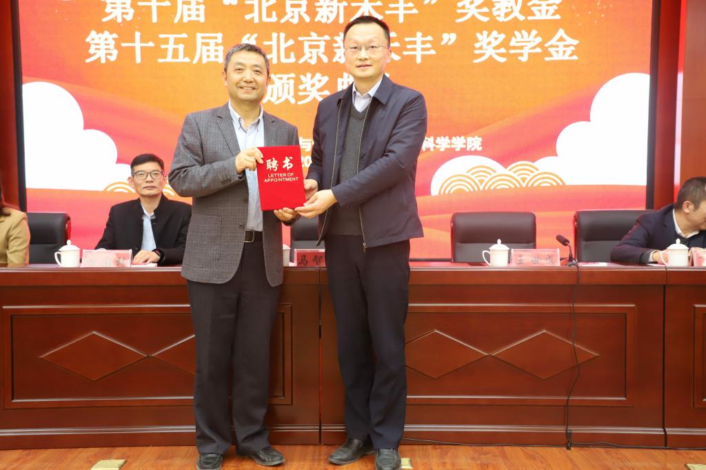 学校举行客座教授聘任仪式,聘请王世成为客座教授,马智群为王世成颁发了聘书。