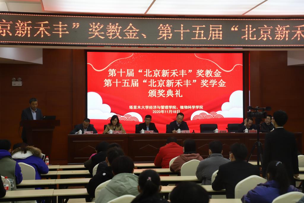 11月18日,第十届“北京新禾丰”奖教金、第十五届“北京新禾丰”奖学金颁奖典礼,在南疆双语培训中心二楼报告厅举行。