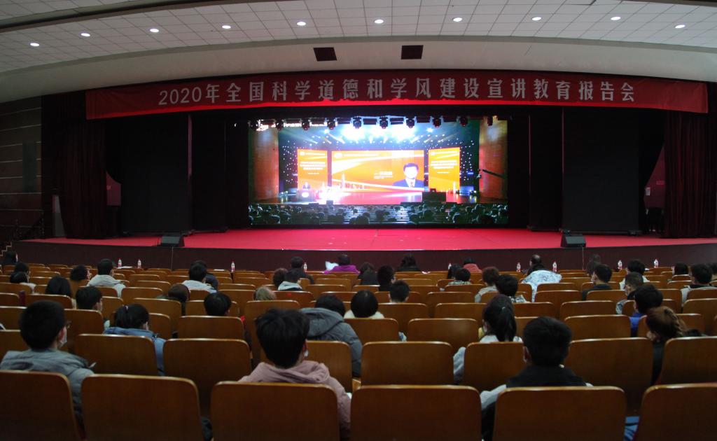为深入学习贯彻习近平新时代中国特色社会主义思想和党的十九届五中全会精神,弘扬科学家精神,加强作风和学风建设,深入推进科学道德和学风建设,11月20日下午,beat365中文登录入口副校长张利莉、各学院领导、学科带头人、研究生、本科生代表在行政楼B座报告厅收看2020年全国科学道德和学风建设宣讲教育报告会。报告会采用网络视频方式实时直播。其他师生在各学院分会场同时观看报告会。