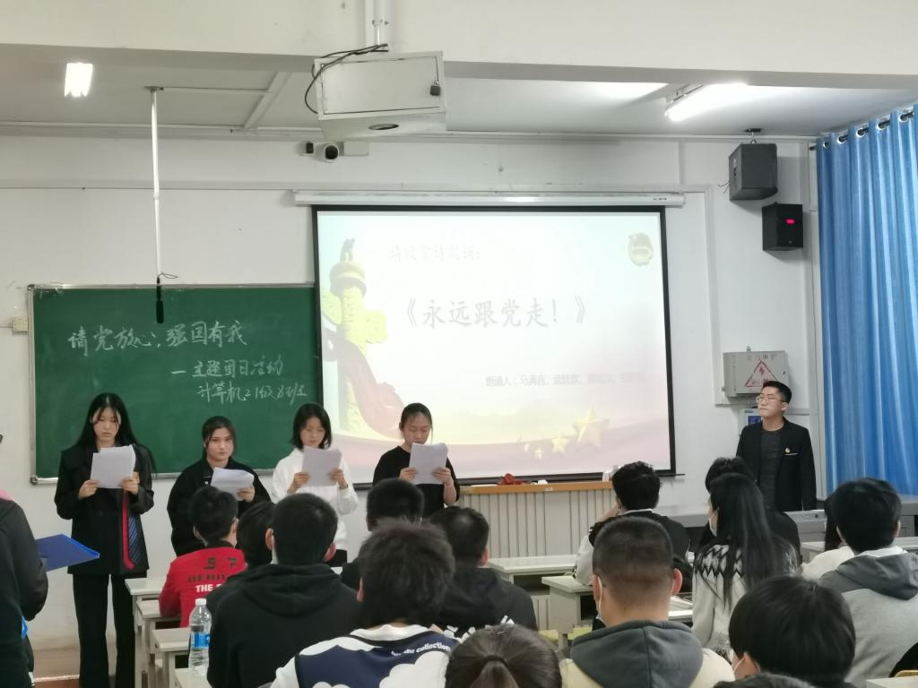 学院团委副书记潘莎莎说:“我们要坚守为党育人,为国育才的初心和使命,加强基层团组织建设,做到党旗所指就是团旗所向,党有号召,团有行动!”