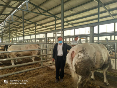 比利时蓝白花牛肉体大、圆形,肌肉极其发达,肩、背、腰和大腿肉块重褶,是一种产肉率高的专用肉牛品种。八团是南疆唯一的比利时蓝白花牛肉繁育基地,专家组一行与阿拉尔市畜牧工作站、新农乳业等相关领导和技术人员通过现场调研,就比利时蓝白花牛的合理推广利用提出如下建议:一是在比利时蓝白花繁育母牛数量比较少的情况下,要利用好其产肉品质优良的特性,可探索性采取与低产的黑白花奶牛杂交的方式进行杂效后代牛的快繁;二是比利时蓝白花牛体形巨大,产犊时存在着难产的风险,在不影响健康的前提下,要试验研究母牛的限饲措施,降低犊牛的初生重;三是自治区肉牛产业体系积极协调行业内相关领域专家,可对相关技术人员进行现场培训,提高技术人员的饲养管理水平;四是杂交利用模式母体选用时,事关新农乳业和四团牛场等多家相关单位,建议繁育规模不要过大,初期控制在800头之内,待获的成功经验后,再推广并扩大利用规模。