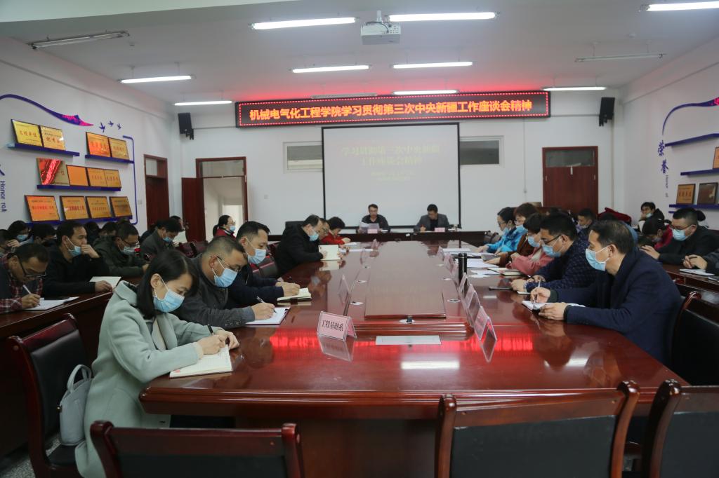10月29日,机电院全体教职工在工科楼229会议室集中学习第三次中央新疆工作座谈会精神。