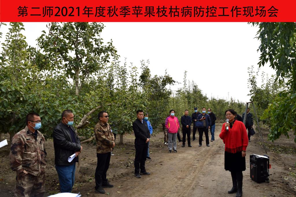 应二师铁门关市农业农村局邀请,10月9日至10日,科技处副处长楼兵干教授到二师29团、31团,就秋季苹果枝枯病防控技术进行现场培训和示范。铁门关市农业农村局有关领导、各团农发中心负责人、业务骨干、各连果树生产管理者参加培训。