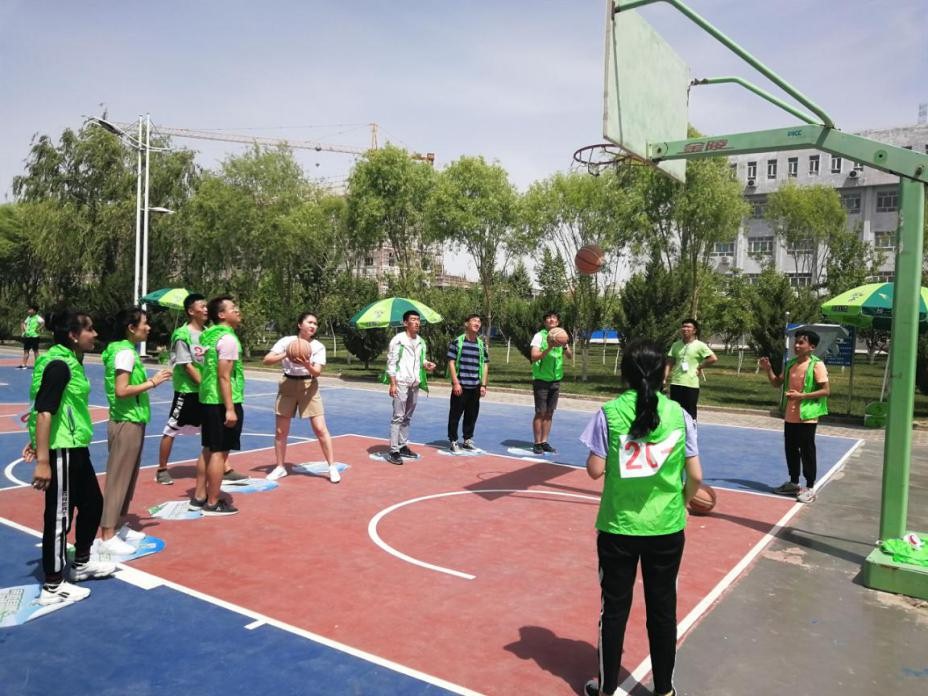以“和谐”为点位名称的“定点投篮”在西区篮球场举行